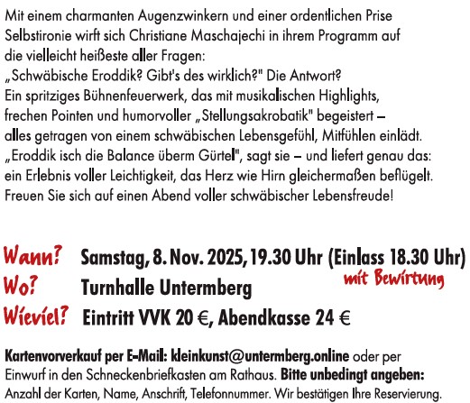 Anmeldung per Mail an: info@untermberg.online oder telefonisch bei B. & C. Daub